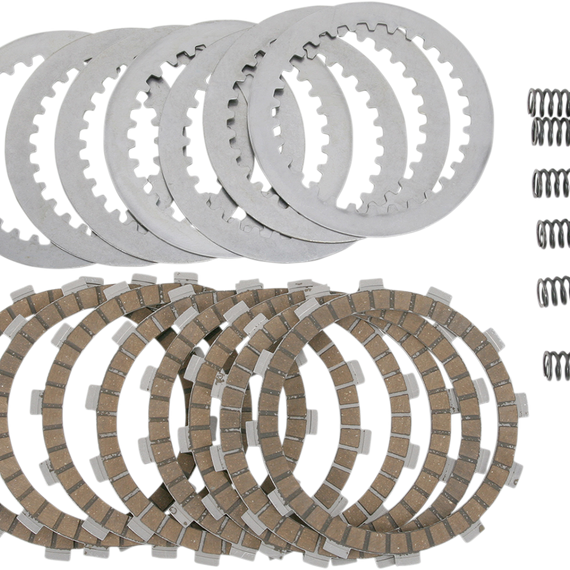 Caracteristicas: Designed to outperform any OEM or aftermarket clutch DPK kits include friction plates, steel drive plates and clutch springs, except when OEM clutch includes reusable diaphragm spring DPK clutch kits come in a foam-lined hard plastic case that protects clutch components from being damaged prior to installation Case can be used to store and transport parts, tools or other items after clutch is installed Come ready to race - no need to presoak plates in oil Designed to ensure ultrasmooth power delivery Exclusive high-heat friction materials for fade-free performance Friction compounds designed to suit off-road and dual-sport bikes More durable than OEM plates Steel drive plates Steel plates won't expand, do not fade or promote clutch swell like stock aluminum plates Long lasting - up to 300% more life than stock plates Increased weight over stock plates adds flywheel effect for aiding starting and traction Will not muddy or contaminate oil Clutch springs Precision-wound using the finest chrome silicone wire Heat-treated and shot-peened for maximum life Individually designed to ensure no slippage with super-strong spring rates Improve feel and ease of clutch operation