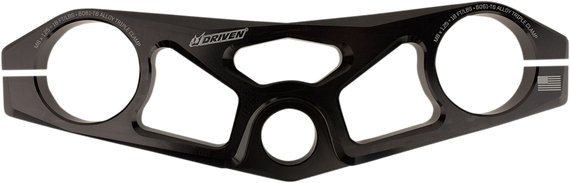 Caracteristicas: Designed to help eliminate front-end flex and add personality to your machine All clamps are accurately machined from aerospace-grade 6061 T-6 aluminum billet Anodized to further increase corrosion resistance and durability Each piece is carefully inspected and laser etched with Driven® logo and specs Each piece comes with all necessary hardware for installation Billet aluminum design greatly increases rigidity and front-end feedback Made in the U.S.A.