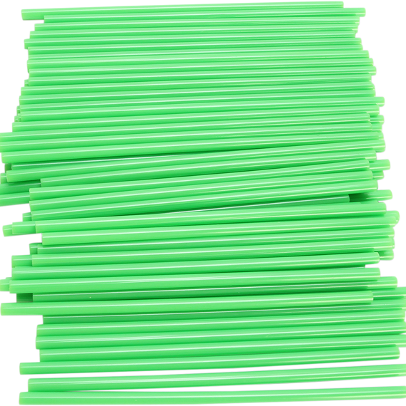 Caracteristicas: Includes 40 81/2"-long pieces for the front wheel and 40 72/3"-long pieces for the rear wheel 80-piece set fits 18" to 21" wheels; sleeves can be cut for smaller wheels