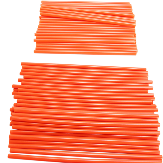 Caracteristicas: Includes 40 81/2"-long pieces for the front wheel and 40 72/3"-long pieces for the rear wheel 80-piece set fits 18" to 21" wheels; sleeves can be cut for smaller wheels