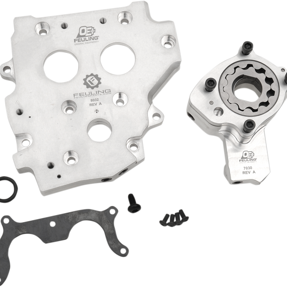 • Kits are an upgrade to the stock oiling system, delivering increased oil pressure and return scavenge volumes from an OE+ billet oil pump and matched OE+ billet cam plate (see OE+ oil pumps for complete specs)