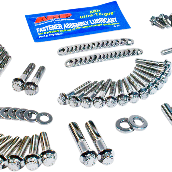 Caracteristicas: Quality 12-point heat-treated 8740 chrome moly steel bolts with black oxide finish and/or Chrome depending on your selection Feature precision-rolled threads for optimum engagement, to prevent galling and promote more consistent torque loading Wide underhead flange design provides even load distribution for optimum sealing of surfaces, preventing leaks Tensile strength rated @ 170,000 psi; superior and stronger than OEM and stronger than grade 8 fasteners Manufactured by ARP® to Feuling’s® exact specifications All kits include moly assembly lubricant for installation Made in the U.S.A.