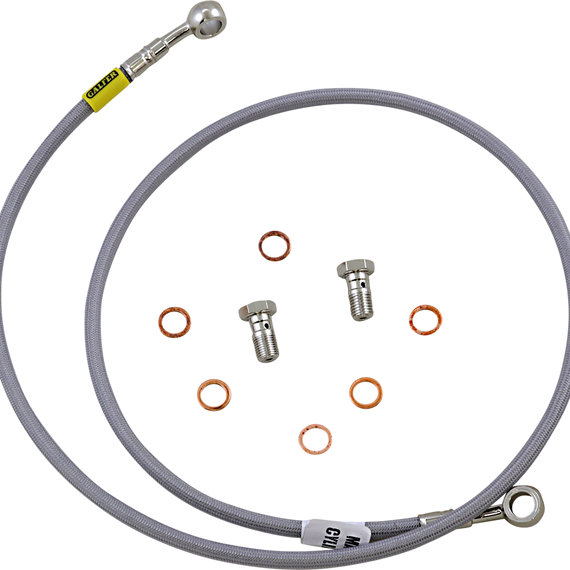 Caracteristicas: Stainless Steel lines are typically the first upgrade you should make Stock rubber lines will break down and expand, causing a spongy feel or worse. Steel lines eliminate expansion which results in consistent feel and performance Made with only DuPont virgin grade PTFE (Polytetrafluoroethylene) inner core 64 strand braid Includes all mounting components, extra washers, and line end labeling, and bike specific installations R&D and manufacturing done in the US