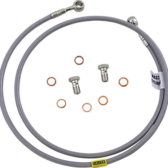 Caracteristicas: Stainless Steel lines are typically the first upgrade you should make Stock rubber lines will break down and expand, causing a spongy feel or worse. Steel lines eliminate expansion which results in consistent feel and performance Made with only DuPont virgin grade PTFE (Polytetrafluoroethylene) inner core 64 strand braid Includes all mounting components, extra washers, and line end labeling, and bike specific installations R&D and manufacturing done in the US