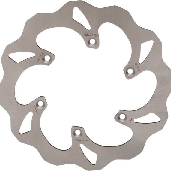 Caracteristicas: The rotor preferred by many top AMA Supercross teams Made of Galfer's unique laser-cut high carbon 420 stainless steel/8 composite Laser cut and double-disc parallel ground to assure perfect flatness and excellent feel Rotors cool as they rotate to lower brake operating temperatures Standard size rotors are direct replacement front and rear brake rotors; do not require any extra parts for install Oversized (270 mm) rotors available for select models (rotor only, do not include brake caliper relocation bracket) Manufactured in Spain