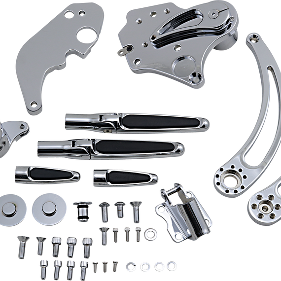 Caracteristicas: These new Softail Forward Controls feature a unique 3-way front to back adjustable position to suit almost any rider and providing maximum comfort. A proven 11/16" master cylinder bore size compatible with the stock rear caliper. Both the shifter and brake pivot assembly incorporate dual sealed bearings and bushings providing a smooth, positive actuation and long-term reliability.