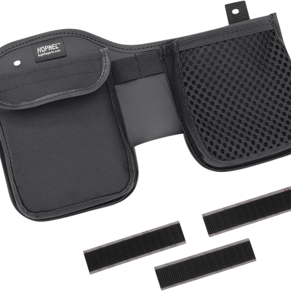 Caracteristicas: Easily mounts to the inside trunk back using the passenger cushion screws Additional hook and loop with adhesive backing keeps the trunk organizer secure inside the trunk Includes one 5” x 6” pocket with flap, one elastic mesh pocket, two 6” tall pocket sleeves and two elastic holders Made in the USA