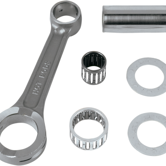 Caracteristicas: Heavy-duty OE replacement connecting rods Certified 8620 AISI steel provides superior strength Crankpins are manufactured from hot-rolled ASTM 4115 and case hardened to 58-62Rc Feature the latest in caged needle roller bearing designs for high rpm longevity Uniquely designed big end uses strategically located side scalloping and vent slots to minimize bearing race distortion at high rpm Small ends are double drilled to supply extra lubrication and cooling to the wrist pin bearing, which is especially important when the piston crown is close to the wrist pin bearing Shot-peened to eliminate surface stress risers and to smoothly blend together the rod forging's radiuses Double honing produces an ultra-round bearing surface for reliability at high rpm Most rod assemblies are sold complete with rod, crank pin, crank pin bearing, top-end bearing and silver-coated bronze phosphor thrust washers Compatible with Hot Rods and OE crankshafts Made in U.S.A.; connecting rod manufactured at Hot Rods Iowa facility