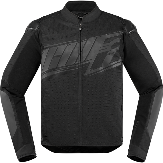 Caracteristicas: Durable textile chassis is tailored with aggressive Icon® Attack Fit Integrated flex zone is combined with engineered laser perforations and dual zipper-cuff vents keep your ride cool and comfortable Removable, insulated SatinCore™ vest liner Full complement of removable D3O® impact protectors, elbows, shoulders and back Icon Attack fit features tailored body and precurved arms Thermoplastic Polyurethane (TPU) shoulder caps provide additional coverage in should impact zones