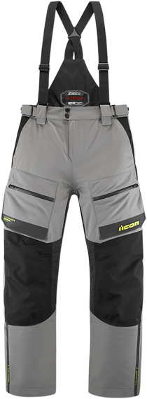 Caracteristicas: Dupontª 3-layer nylon shell with 10k/10k Waterproof breathability as well as durable Cordura¨ overlays The ICON Raidenª pant features full seam sealing and full-leg waterproof YKK¨ zippers A full complement of D3O¨ impact protectors - both hip and knee (3 positions) offer coverage Cargo storage pockets, belt loops, sizeable technical Hook & Loop lower leg adjustments with a waterproof gutter system, and retro-reflective hits