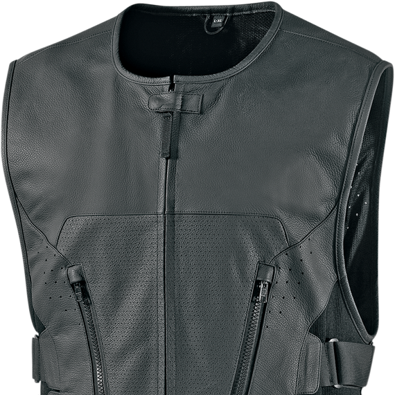 Caracteristicas: Premium 1.4mm leather chassis Removable D3O® Viper back protector Large accessible back panel for attaching club patch Sized to fit over current riding jacket or use side-fit adjustment straps to wear alone Cross-draw storage pockets Premium YKK® zippers Stripped vest is perfect for clubs that require only club patches to be worn on members' vests Icon Relaxed fit with straight body