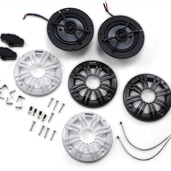 Caracteristicas: UV-treated polypropylene woofer with Santoprene rubber surround 1/2" PEI balanced dome tweeter with neodymium magnet UV-resistant polymer basket Stainless steel mounting hardware included Sealed motor structure and locking terminal covers Comes with both charcoal and white grilles Works best with 50 watts of recommended power