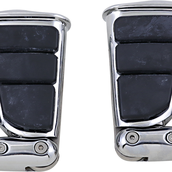 Caracteristicas: A convenient alternative to forward controls Our clever cruise peg features a fold-forward design Secondary fold-out peg extends 3" forward and locks into place for added legroom and comfort Pegs without male-mount ends require the use of Kuryakyn splined footpeg adapters