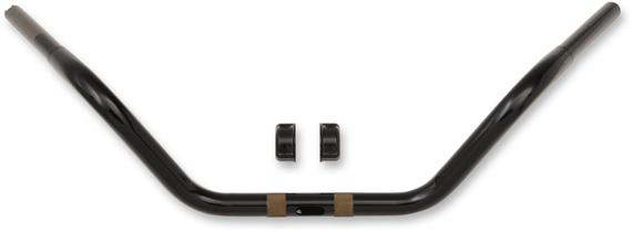 Caracteristicas: Features extra pullback for a more relaxed riding position Measure 1-1/4" diameter in the clamping area; will work with the OEM riser and clamp Notched for Throttle-By-Wire applications Drilled for internal wiring Bars include new black control clamps to replace the oversize OEM clamps Do not need to remove the stock pin in the OEM mount clamps; bars still have more than 35 degrees of adjustment Knurled clamping area Will work with hydraulic clutches Made in the U.S.A.