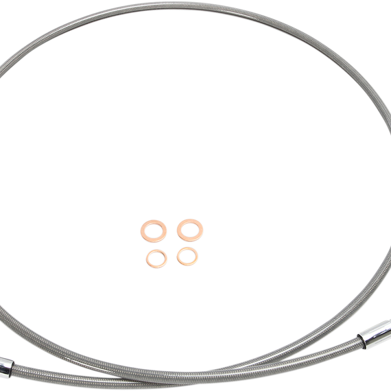 Caracteristicas: Manufactured with an enhanced construction for extreme braking response and durability Designed to be compatible with Harley-Davidson® ABS requirements for stock and alternate length brake lines Inner PTFE tubing braided with XR Stainless Steel reinforcement embedded in a tough Nylon outer jacket offers exceptional protection for paint or chrome All fittings are highly polished and chrome plated All brazed manifold construction eliminates leaks, alignment problems, and unattractive threaded connections for a sleek appearance AN-3 connections for easy installations Assembled in the U.S.A. Complete kits contain brake line assemblies to connect the caliper(s) to the master cylinder All non-ABS kits are complete kits Dyna and Sportster ABS kits are complete and include an upper and lower brake line Touring, Trike and Softail ABS brake line kits are available separately as upper and lower kits (except '18+ Softail FXFB, which is a complete kit) ABS lower kits are optional and do not require an upper line for installation ABS upper kits contain a brake line assembly with any needed adapters to connect the ABS controller or lower brake line assembly to the master cylinder. A lower brake line assembly is not required