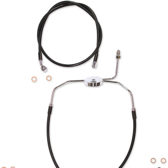 Caracteristicas: Manufactured with an enhanced construction for extreme braking response and durability Designed to be compatible with Harley-Davidson® ABS requirements for stock and alternate length brake lines Inner PTFE tubing braided with XR Stainless Steel reinforcement embedded in a tough Nylon outer jacket offers exceptional protection for paint or chrome All fittings are highly polished and chrome plated All brazed manifold construction eliminates leaks, alignment problems, and unattractive threaded connections for a sleek appearance AN-3 connections for easy installations Assembled in the U.S.A. Complete kits contain brake line assemblies to connect the caliper(s) to the master cylinder All non-ABS kits are complete kits Dyna and Sportster ABS kits are complete and include an upper and lower brake line Touring, Trike and Softail ABS brake line kits are available separately as upper and lower kits (except '18+ Softail FXFB, which is a complete kit) ABS lower kits are optional and do not require an upper line for installation ABS upper kits contain a brake line assembly with any needed adapters to connect the ABS controller or lower brake line assembly to the master cylinder. A lower brake line assembly is not required