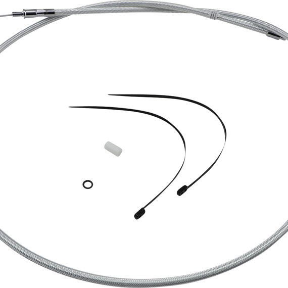 Caracteristicas: Sterling Chromite® II uses patented technology to look like chrome Braid color and weave match on all Magnum control cables and brake lines Coated with a non-yellowing, crystal clear FEP fluoropolymer outer jacket for exceptional protection against scuffing paint or chrome Low-effort, high-efficiency cable design meets or exceeds all OE specifications for fitment, construction, and endurance All fittings are polished and chrome plated Attractive adjuster with integrated water resistant seals does not require a boot Rubber seal in transmission fitting eliminates fluid leaks All cables are factory lubricated for smooth, consistent, long-lasting operation Assembled in the U.S.A. Late style cables are measured with the adjuster completely collapsed