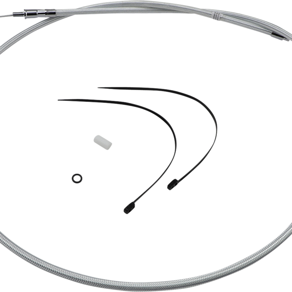 Caracteristicas: Sterling Chromite® II uses patented technology to look like chrome Braid color and weave match on all Magnum control cables and brake lines Coated with a non-yellowing, crystal clear FEP fluoropolymer outer jacket for exceptional protection against scuffing paint or chrome Low-effort, high-efficiency cable design meets or exceeds all OE specifications for fitment, construction, and endurance All fittings are polished and chrome plated Attractive adjuster with integrated water resistant seals does not require a boot Rubber seal in transmission fitting eliminates fluid leaks All cables are factory lubricated for smooth, consistent, long-lasting operation Assembled in the U.S.A. Late style cables are measured with the adjuster completely collapsed