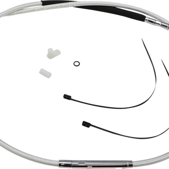 Caracteristicas: Sterling Chromite® II uses patented technology to look like chrome Braid color and weave match on all Magnum control cables and brake lines Coated with a non-yellowing, crystal clear FEP fluoropolymer outer jacket for exceptional protection against scuffing paint or chrome Low-effort, high-efficiency cable design meets or exceeds all OE specifications for fitment, construction, and endurance All fittings are polished and chrome plated Attractive adjuster with integrated water resistant seals does not require a boot Rubber seal in transmission fitting eliminates fluid leaks All cables are factory lubricated for smooth, consistent, long-lasting operation Assembled in the U.S.A. Late style cables are measured with the adjuster completely collapsed