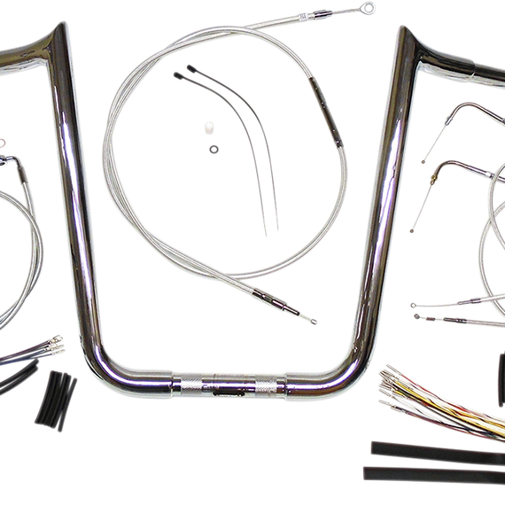 Caracteristicas: Complete kits with matching braided cables and brake lines Kits include throttle and idle cables of throttle-by-wire extensions, clutch cable or hydraulic clutch line, brake lines, copper crush washers, hardware, and any necessary switch wiring of turn signal extension All cable and brake lines feature Sterling Chromite II braid with highly polished chrome plated fittings All cables are a low-effort, high-efficiency design that meets or exceeds all OE specifications for fitment, construction and endurance Kits for dual disc models include an all brazed manifold that eliminates leaks, alignment problems and unattractive threaded connections Assembled in the U.S.A. Kits are based on using ape hanger style handlebars with 2†risers