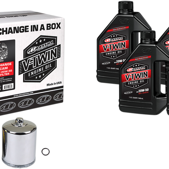 • 4 quarts of Maxima V-Twin 100% synthetic 20W-50 engine oil