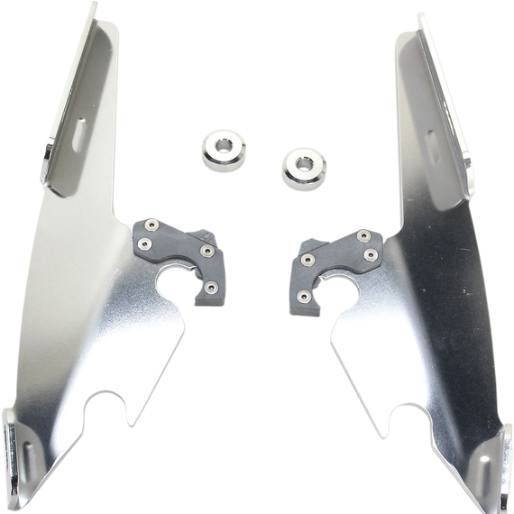 Caracteristicas: Plates Only” kits can be use when you already have Memphis Shades Trigger-Lock anchoring hardware on your bike. For example, if you already run, say, a Gauntlet fairing, you could mount a windshield or another fairing using “Plates Only” Kits are also custom-fit to each style of bike for no-hassle installation Made exclusively of electrocoated aluminum and stainless steel, with stainless steel fasteners Made in the U.S.A. - Made in Memphis!