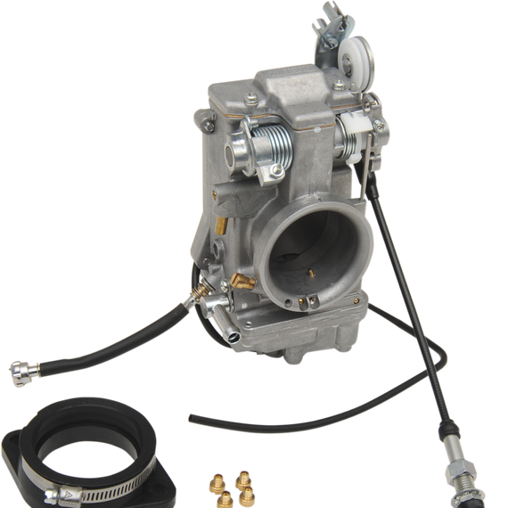 Caracteristicas: These high-performance carbs are ideal for realizing the maximum potential from custom and race engines Include rubber mounting flange with 78mm bolt hole centers, choke cable and four different main jets HSR smoothbore carbs offer excellent throttle response and control Recommended for engines over 120ci or larger For race and custom applications only Use stock H-D throttle cables Made in Japan