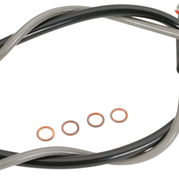 Caracteristicas: Swivel union ends are the secret to easier fitting, and ensure a kink- and stress-free installation Venhill Engineering in the UK makes Moose Racing Stainless Steel Brake and Clutch lines to the highest specifications Each line is made from top quality DuPont Teflon®-coated hose, wrapped with British-made stainless steel, and PVC-coated for protection and great looks Rubber protection boots and extra-rigid tubing are used to protect vulnerable areas from heat and impact and to prevent hose flex under compression Each line is designed to withstand a minimum of 14,000 psi Installing Moose Racing stainless lines gives a large performance increase by significantly reducing expansion under pressure and absorption of water when compared to stock rubber hoses