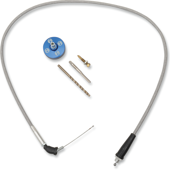 • Includes a stainless steel braided cable and Mikuni-style idle adjustment screw