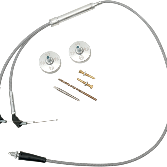Caracteristicas: Includes a stainless steel braided cable and Mikuni-style idle adjustment screw Replaces stock carburetor cap for the Yamaha Banshee and Blaster Made in the U.S.A.
