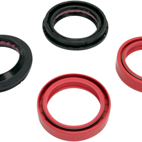 Caracteristicas: Seal profile is engineered to create equal pressure in each seal lip; equalized seal pressure creates less drag and longer seal life Patented MAX-LIFE has a coefficient of friction up to 3 times less than the OEM seal material Triple-lip seal design Dyno-tested to last 3 to 4 times longer than OEM seals Directional ribs allow seal to be installed easily Kits include fork seals and dust wipers
