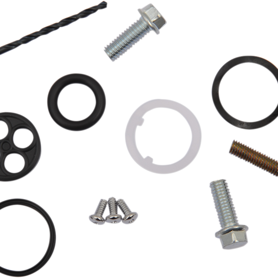Caracteristicas: Includes components to rebuild one Fuel Tap Kits includes all necessary face screws, tank bolts, face gasket, tank gasket, diaphragm, o-rings, wave washer, and misc components Non re-buildable riveted Honda specific Kits include special drill and self-taping screws along with instructions for easy and inexpensive rebuild