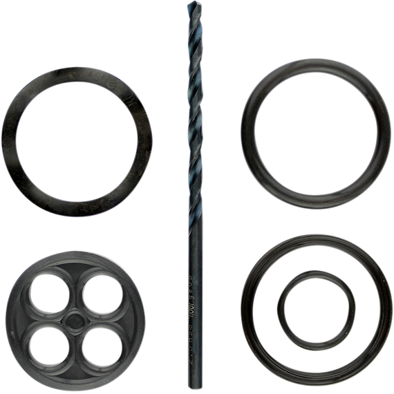 Caracteristicas: Includes components to rebuild one Fuel Tap Kits includes all necessary face screws, tank bolts, face gasket, tank gasket, diaphragm, o-rings, wave washer, and misc components Non re-buildable riveted Honda specific Kits include special drill and self-taping screws along with instructions for easy and inexpensive rebuild