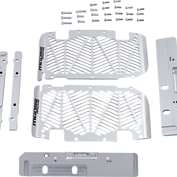 Caracteristicas: Protect the front of your radiators from an impact or flying debris Made from 3/16” aluminum Support rods welded on to attach to your Moose Radiator Braces (sold separately) Easy to clean up Made in the U.S.A.