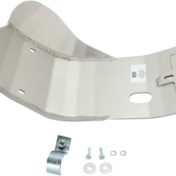 Caracteristicas: Protect vital engine parts and cases from rocks and debris Clear anodized for corrosion protection and good looks Skid plates made from 3/16" 5052 H-32 aluminum Smooth underside won't snag when crossing logs Oil drain hole on all required models Heat-treated chromoly steel clamps keep plates mounted securely All mounting hardware included Made in the U.S.A.
