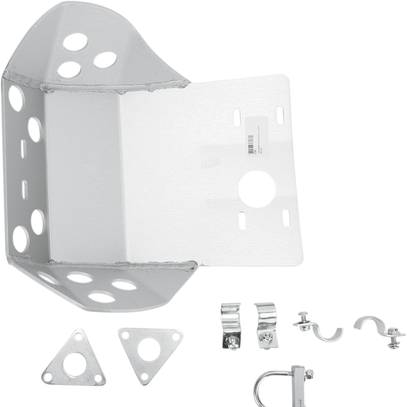 Caracteristicas: Protect vital engine parts and cases from rocks and debris Clear anodized for corrosion protection and good looks Skid plates made from 3/16" 5052 H-32 aluminum Smooth underside won't snag when crossing logs Oil drain hole on all required models Heat-treated chromoly steel clamps keep plates mounted securely All mounting hardware included Made in the U.S.A.
