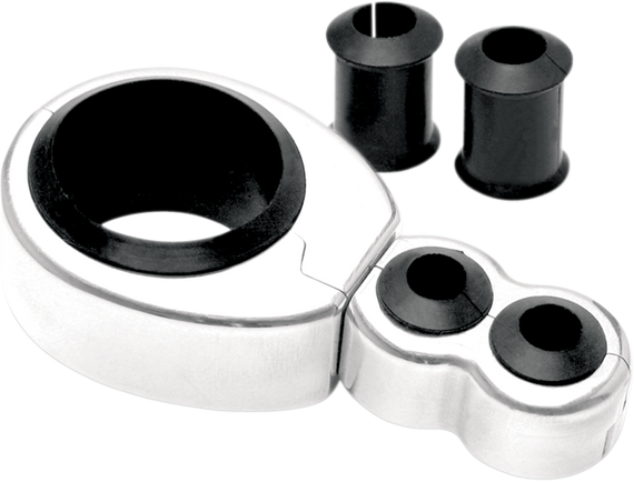 Caracteristicas: Unique two-piece design allows easy installation Swivel-head design allows more natural cable routing without excessive bending Innovative single-bolt clamp gives a clean custom look Rubber sleeves protect painted surfaces and cable housing