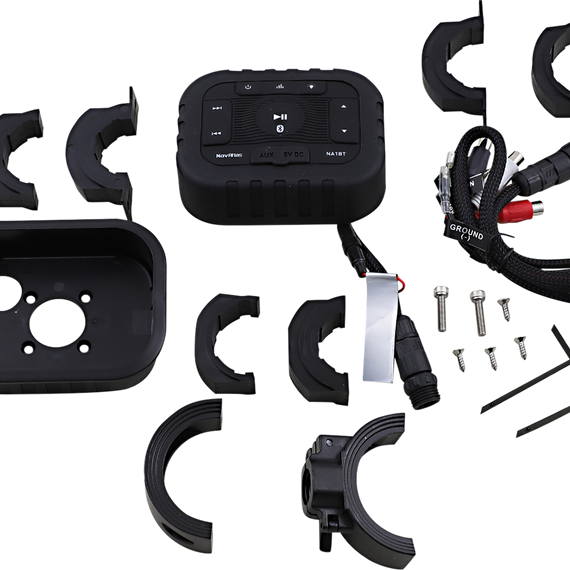 Caracteristicas: Handlebar-mount controller fits 1-1/2”, 1-3/4” and 2” bars High-performance CSR 4.0 Bluetooth Digital/analog audio output LED lighting control for NavAtlas speakers and sound bars Waterproof connectors Includes 2’ universal RCA connector