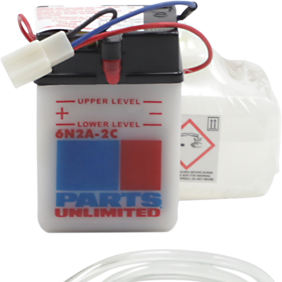 • Kit includes battery, pre-measured acid pack, red filler tube, hardware kit and clear vent tube