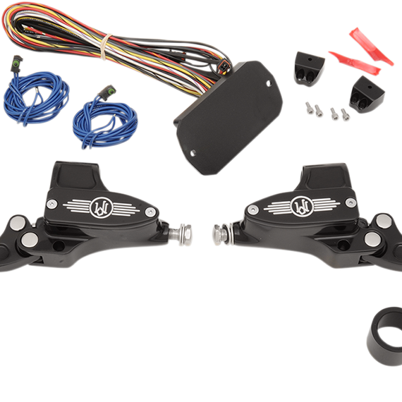 Caracteristicas: CNC machined from billet aluminum Kits include brake master cylinder, brake light switch, starter interrupt switch, left and right side switch housings, throttle housing, clutch side spacer, CAN Bus controller and perch Hard anodized bore to eliminate wear Made in the U.S.A. 14-16 FLHT/FLHX applications require the additional purchase of the following OEM #s for a complete installation: one each of OEM part #s 71735-08, 71822-98, 71821-98, 71825-96A and two of OEM part # 71618-98