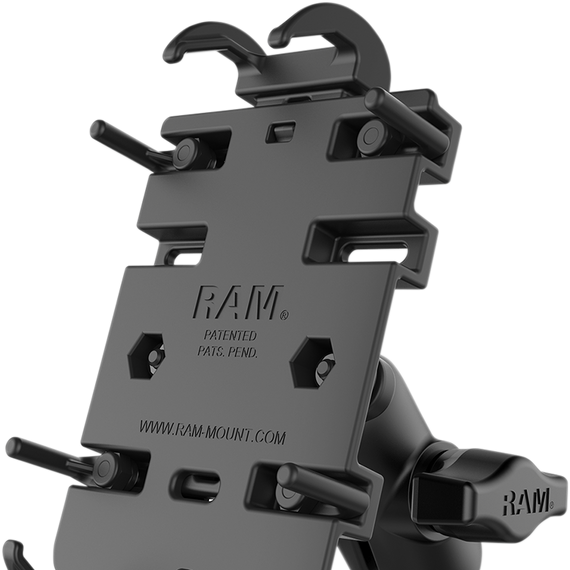 • The RAM Quick-Grip™ Handlebar Mount consists of a zinc coated u-bolt base, double socket arm and spring loaded cradle for supporting most phones
