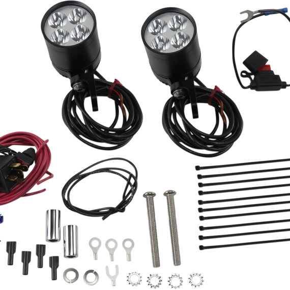 Caracteristicas: LED lights that put out a super-bright 3000 Lumens of daylight white light each rated at 6000 Kelvin Each one of these lights has twice the output of the headlight The LED lights use much less power than comparable Halogen bulbs The aluminum housings are completely waterproof The kit includes a set of LED lights, a lighted switch, adjustable mounting, and easy to follow instructions Low power consumption