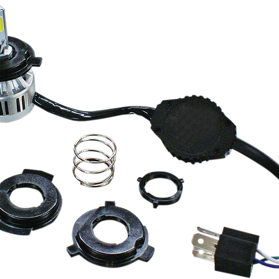 Caracteristicas: Replaces all H4-style headlight bulbs Uses stock reflector and bulb housing 6000K (6000 Kelvin) daylight white (not yellow) light beam with no blue tint Built-in ballast with active heat-management fan Offers a super bright 2000 lumen LED output (versus standard H4 lumen output of 800-1200 lumens) Draws less than 1 amp compared to stock bulb at 5 amps Easy do-it-yourself plug-and-play installation 20,000 hour bulb life DOT compliant.