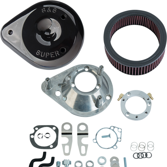 Caracteristicas: Include an S&S cover, backing plate and high-quality filter element and hardware kit Available for most OEM carburetors and S&S performance intake systems Original S&S teardrop air cleaner assemblies Increase horsepower with no other changes Made in the U.S.A. Installation of an S&S air cleaner may require re-jetting or engine re-tuning, however tuning within the OEM emissions standards is required to maintain E.O. validity.