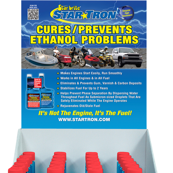 Caracteristicas: Cures and prevents Ethanol fuel problems Works in all 2- and 4-cycle engines Makes all engines start easily and run smoothly Removes carbon deposits; prevents new deposits from forming Improves fuel economy Stabilizes gas for up to one year Each ounce treats up to 16 gallons of gas Cannot be overdosed Also available as displays!