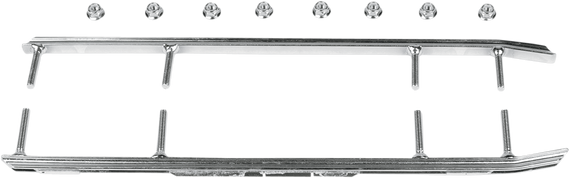 Caracteristicas: The first major breakthrough in wear bar technology since the 1950s Unique corner-carving hourglass design yields better control at speed with no increased steering effort Better tracking on trails - hourglass wear bar shape catches snow from ski sides to make steering more positive Average of 1' - 2' tighter turning radius in soft snow conditions 20% lighter than conventional 1/2" diameter round wear bars Zinc-plated for corrosion resistance Lifetime wear rate is nearly equal to current round and square wear bar types Manufactured by Stud Boy Designed and tested by USI Some models require drilling extra holes in the skis.