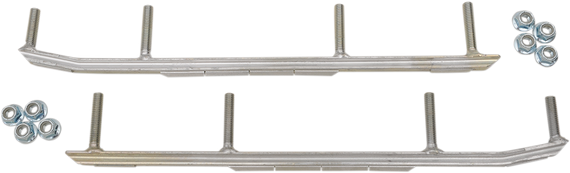 Caracteristicas: The first major breakthrough in wear bar technology since the 1950s Unique corner-carving hourglass design yields better control at speed with no increased steering effort Better tracking on trails - hourglass wear bar shape catches snow from ski sides to make steering more positive Average of 1' - 2' tighter turning radius in soft snow conditions 20% lighter than conventional 1/2" diameter round wear bars Zinc-plated for corrosion resistance Lifetime wear rate is nearly equal to current round and square wear bar types Manufactured by Stud Boy Designed and tested by USI Some models require drilling extra holes in the skis.