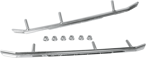 Caracteristicas: The first major breakthrough in wear bar technology since the 1950s Unique corner-carving hourglass design yields better control at speed with no increased steering effort Better tracking on trails - hourglass wear bar shape catches snow from ski sides to make steering more positive Average of 1' - 2' tighter turning radius in soft snow conditions 20% lighter than conventional 1/2" diameter round wear bars Zinc-plated for corrosion resistance Lifetime wear rate is nearly equal to current round and square wear bar types Manufactured by Stud Boy Designed and tested by USI Some models require drilling extra holes in the skis.