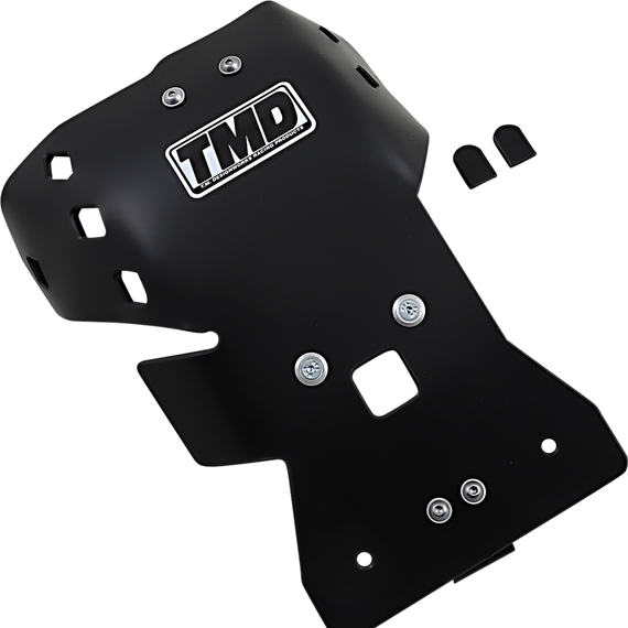 Caracteristicas: Composite impact absorbing plastic with silicone additive to reduce friction Built for rough MX, off-road and enduro riders who need maximum racing protection TMD skid plates are designed to allow maximum frame flex Precision-formed (not molded) with no welds to crack or creak Up to 45% lighter than aluminum skid plates and reduced engine bounced to the rider 35% lighter than alloy plates All hardware is 100% replaceable Covers frame rails, water pump and ignition cover Reduces noise and vibration Engineered to provide the best overall coverage
