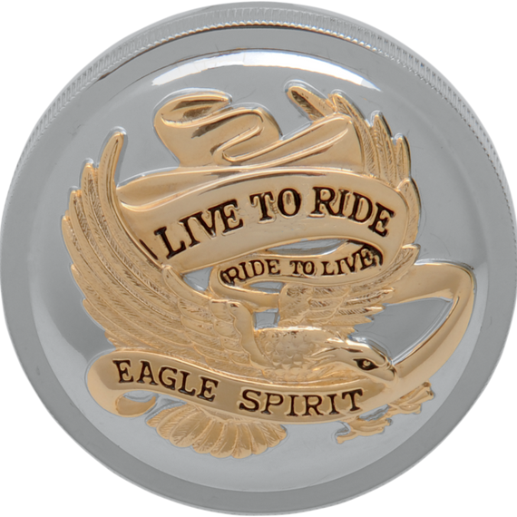 Live To Ride Gas Cap - Chrome With Gold - Vented
